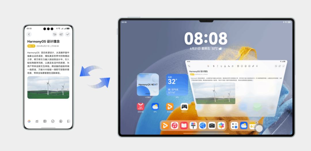 其一,基于“一个系统”的分布式能力,能打通设备间的壁垒、实现多设备适配,让全场景无缝协同。