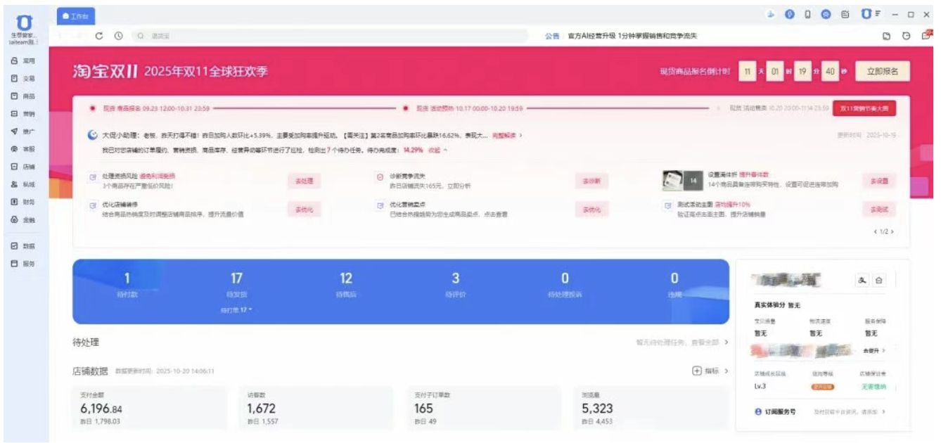 淘宝「生意管家」后台|图片来源:商家