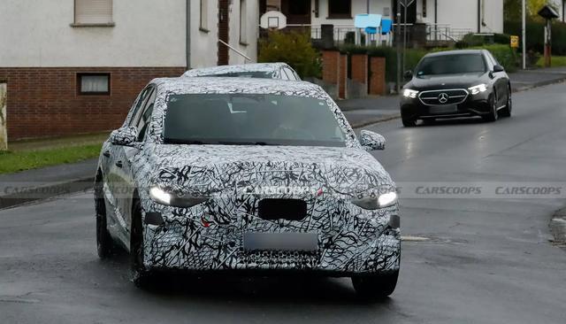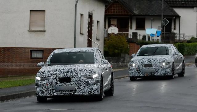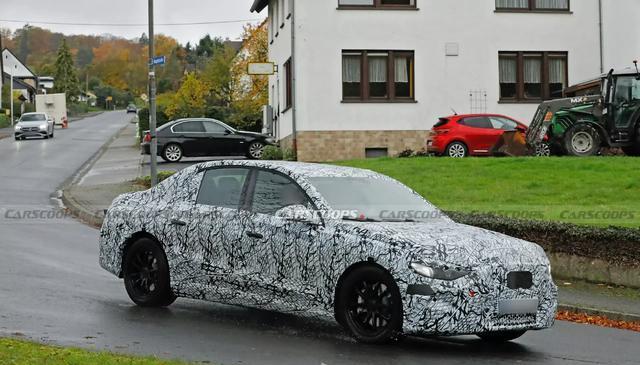 在海外公路上测试的奔驰E级EQ身上,大量黑白迷彩伪装几乎遮挡了所有主体造型,但通过一些轮廓变化,还有此前官方曝光的信息,这台中大型纯电动豪华轿车还是有不少值得一看的地方。从车头造型来说,大灯还占有一些临时设计,但无论是明显的边框分界线,还是下方对应的小尺寸导流,车辆都会沿用一体式大灯,并稍稍调整日行灯的造型与相对位置,实用性会成为这次设计的重点。除了灯组,它的大号尺寸格栅预计会与奔驰GLC级、C级纯电动版本保持大体一致,仅仅是在前保险杠内保持少量气孔。很明显,这些处置除了提示了奔驰通用的新一代家族设计语言外,也意味着一些务实考虑会成为新批次奔驰的重点。