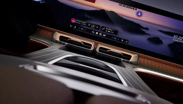 至于说驾驶舱的设计,这一批奔驰无论是燃油车,还是纯电动车,都将在家族设计语言背景下完成全车系延伸。尽管奔驰E级EQ还没有可靠的曝光,但我们可以稍稍参考奔驰GLC级EQ的设计,也就是搭载有总体显示面积为39.1英寸的MBUX超级屏幕。能看到的是,这样的新设计还是在T型中控台基础下打造的,而MBUX超级屏幕不仅在两端以同一面板包裹了炮筒式出风口,也实现了仪表、中控、副驾驶娱乐的三屏合一。其实在新势力当中,三联屏早就不少见了,但像奔驰这样采用单一屏幕来覆盖所有信息娱乐的确实不多。