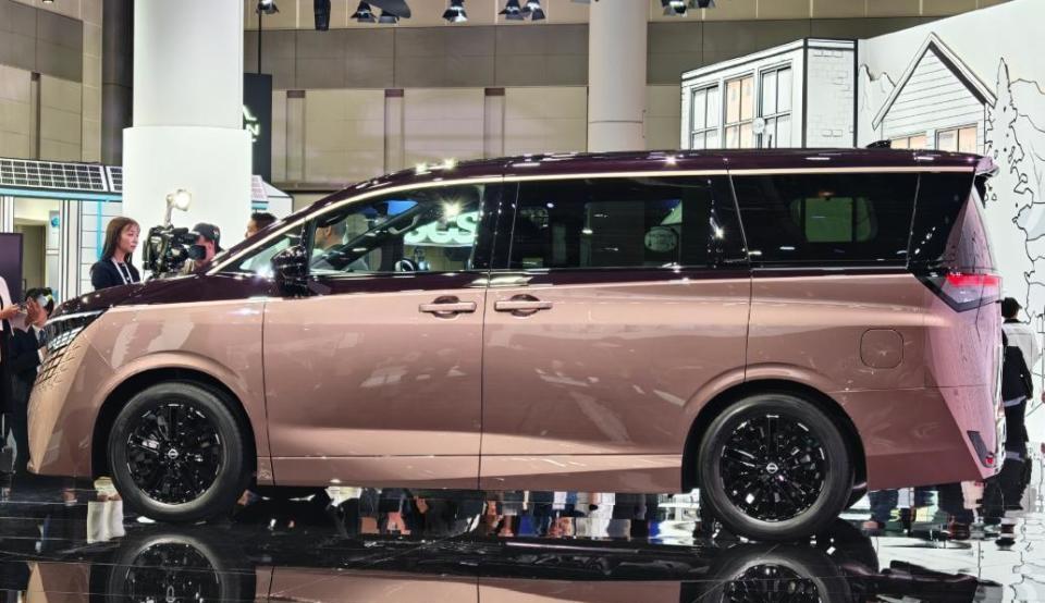 而就在刚刚,日产就曝光将会有计划的将第四代Elgrand引入中国市场!上图就是此前在东京车展上亮相的新一代Elgrand!还是先简单的了解一下这款车,就风格而言,这款车还是相当前卫,各种时尚元素都出现在这款车中。正面依旧是熟悉的日产V-motion前脸,但为了能契合到这款车的风格,所以在细节上还是做了调整。另外我们就以这款车的版本为例,双拼色的设计看起来确实高贵了一些。侧面还是采用了MPV传统布局,一体式轮眉,机械式门把手,增加实用性!黑色轮毂也提高了运动感。尺寸上,轴距达3米,所以内部的空间还是非常出色的!
