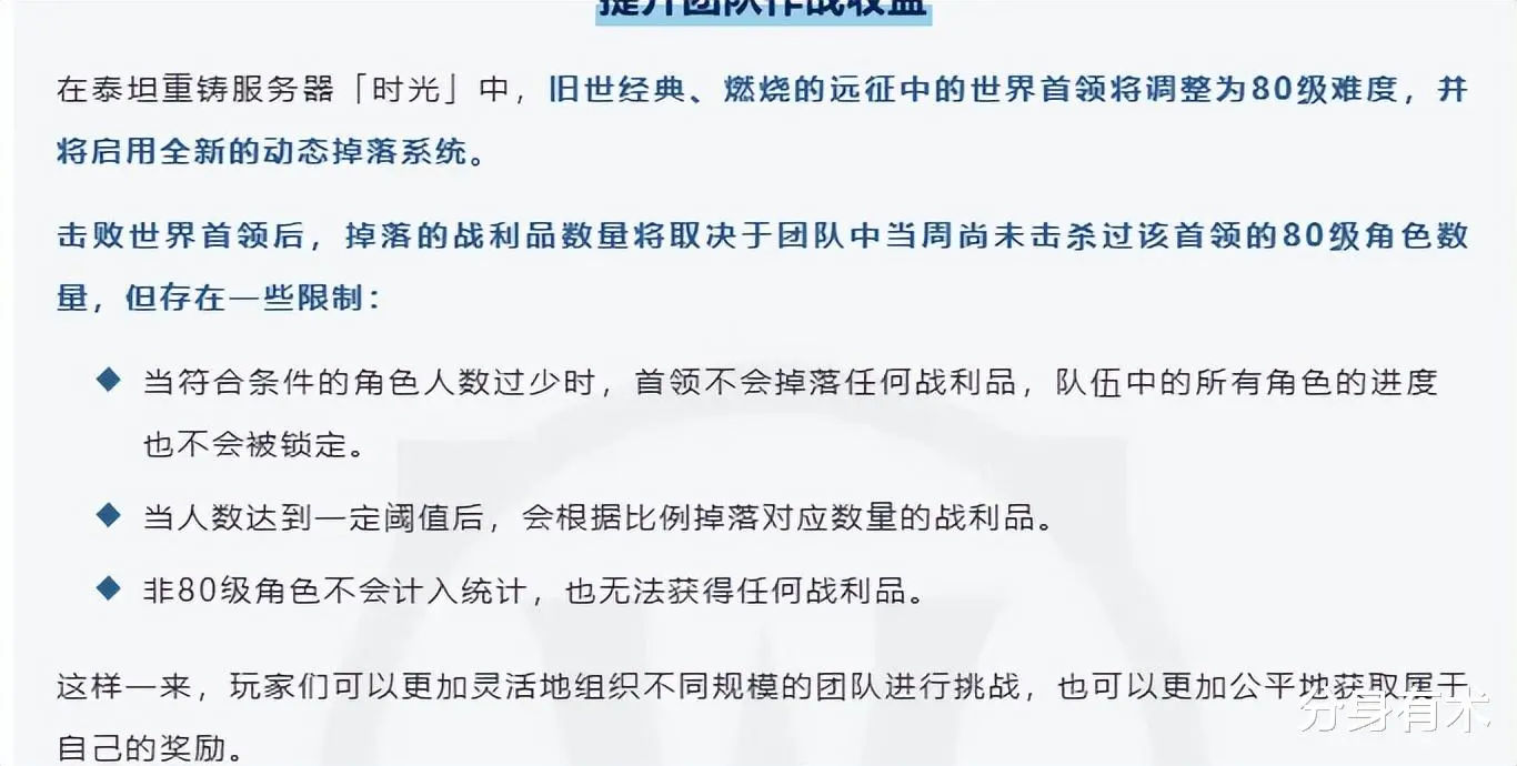 第五点世界boss收益动态提升,这个时候很多TBC世界boss都开始有用了而且他这个世界boss,你需要达到一定数量玩家才会有收益,像之前防骑去单刷这个世界boss打地板金都没有了,不过的话也是不错的一个改动吧。