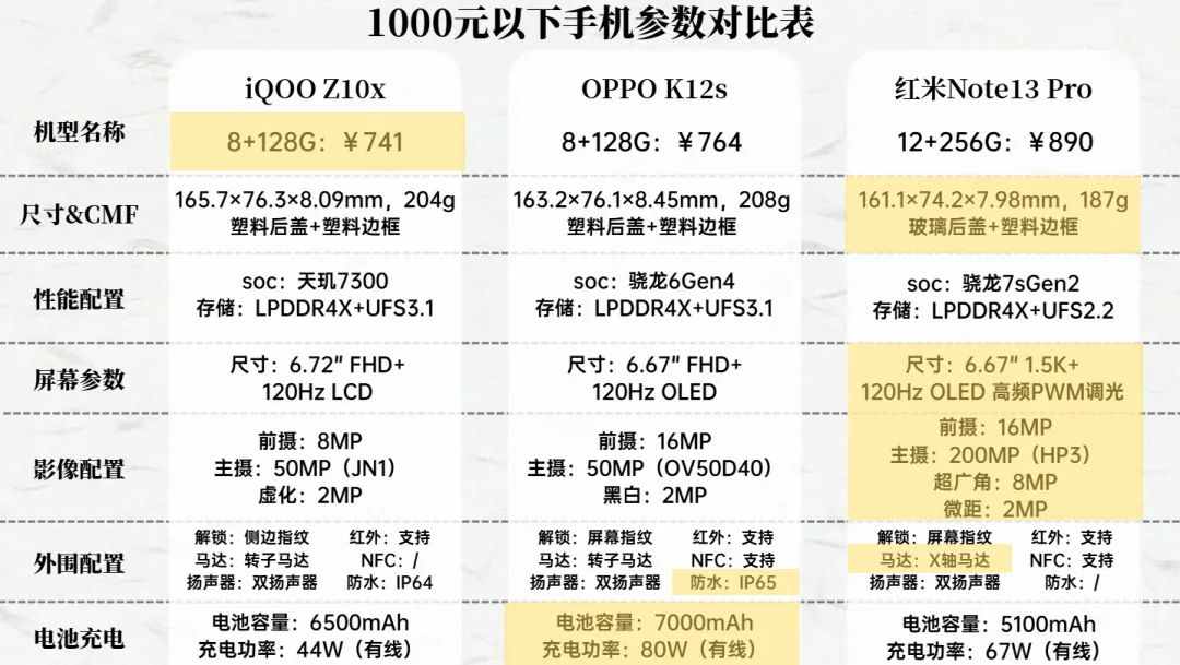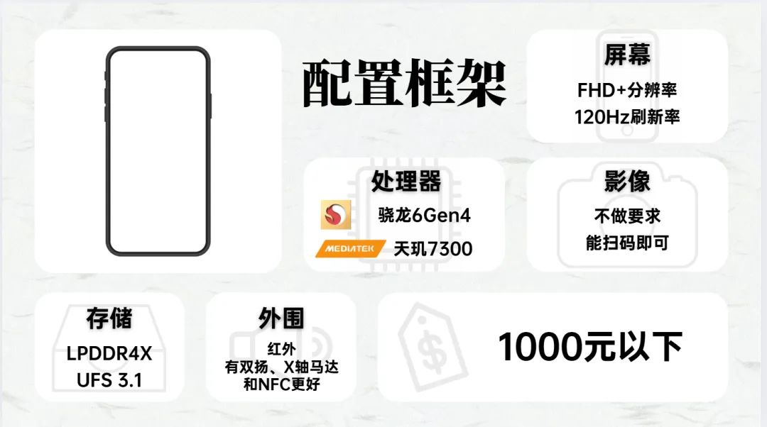 处理器方面,百元机比较推荐搭载骁龙6g4和天玑7300的产品,这可以说是保证日常使用的“底线”,低于这个配置的不推荐。