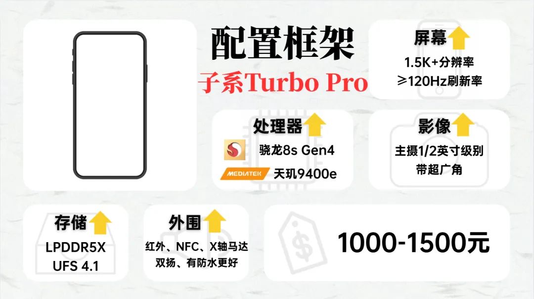 这个价位推荐子系Turbo Pro系列产品,推荐买骁龙8s gen4或者天玑9400e处理器的产品,性能不错,唯一问题是8s gen4的发热会稍微大一点,有“小火龙”的差评。