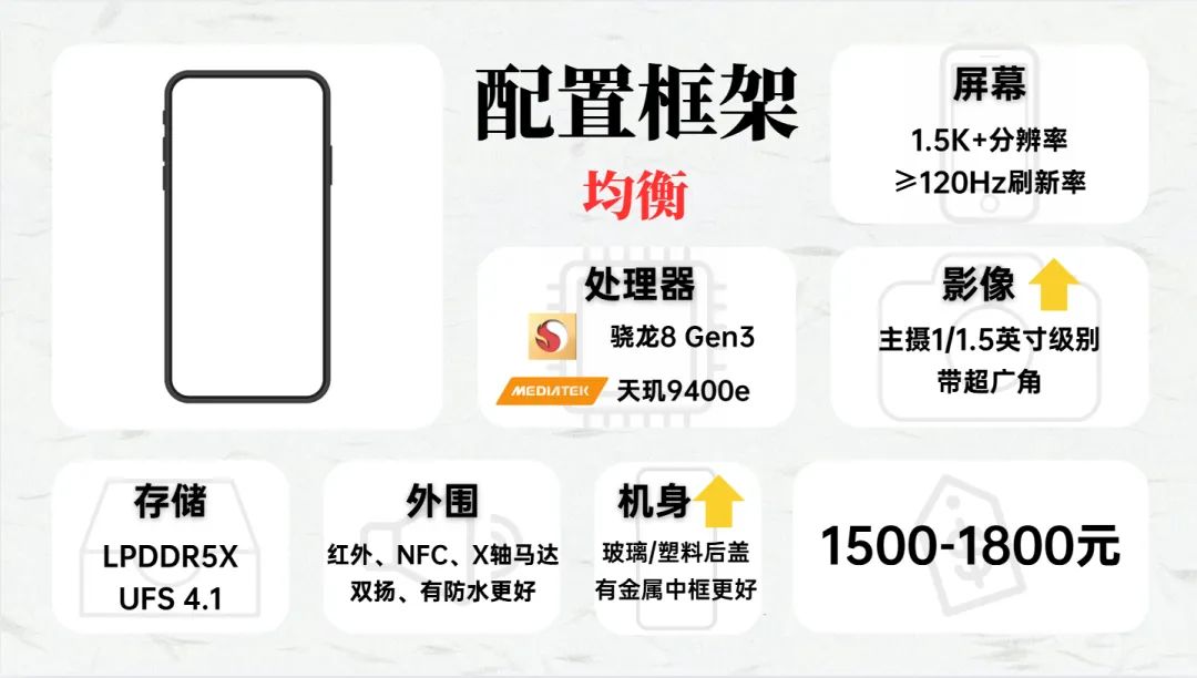 为了方便选购,我给大家用“配置框架法”分析,先定框架,再根据不同的细节配置挑选产品。
