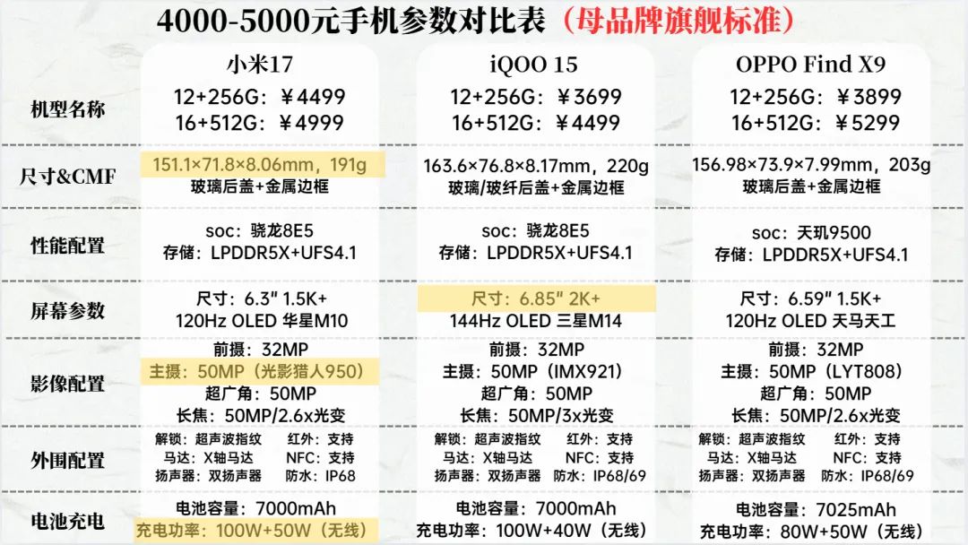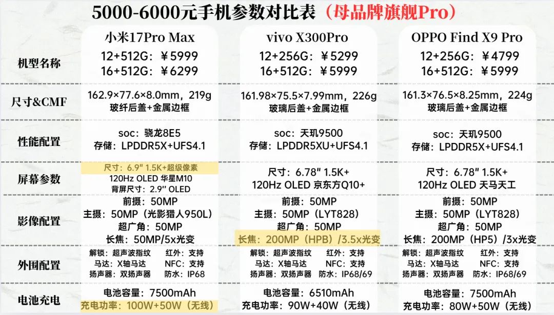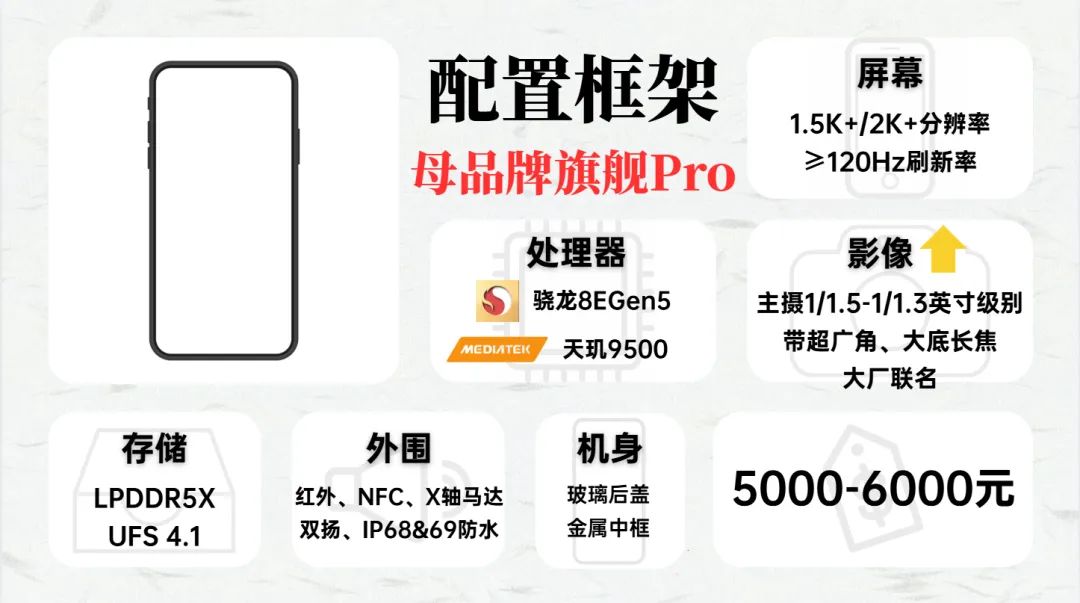这个价位就是母品牌旗舰Pro版机型的价位段,相比标准版,Pro版主要是在影像规格上有明显的提升,搭载超大底长焦,更高素质的广角镜头,除此之外,像小米17Pro系列,比起标准版还增加了背屏这样的特殊功能。