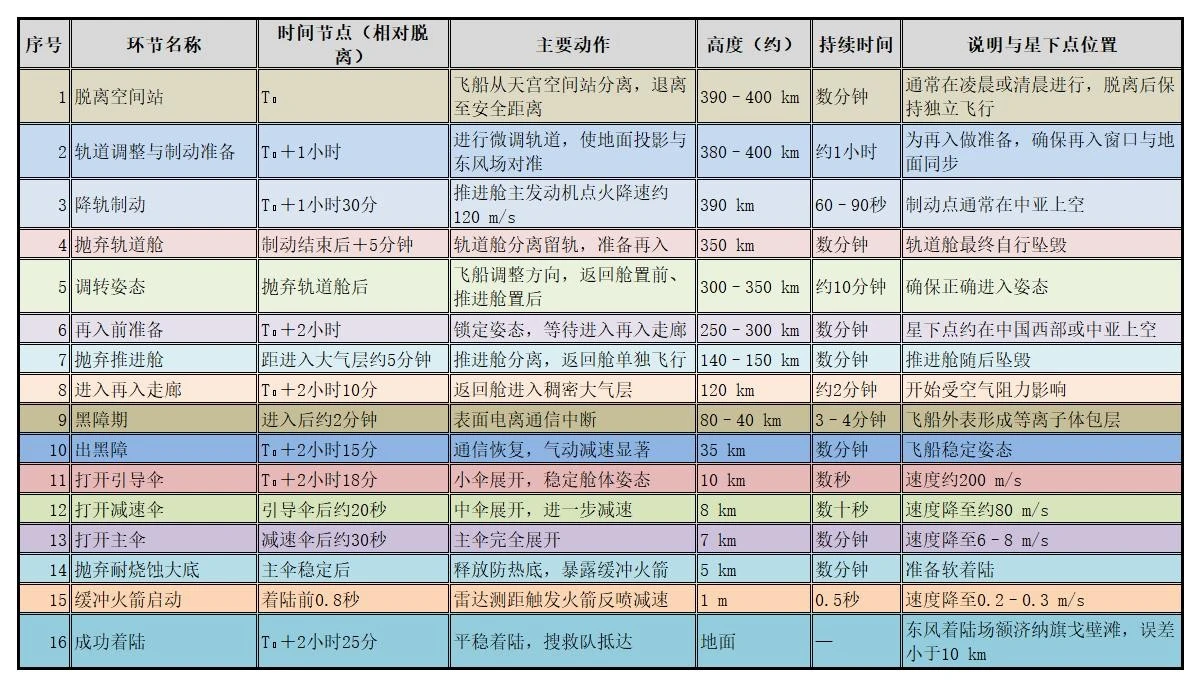 所有航天员转移完毕后,神舟二十二号将与空间站分离,开始返回地球。返回流程与常规任务类似,飞船会先进入返回轨道,经过多次姿态调整后穿越大气层,最终在东风着陆场着陆。