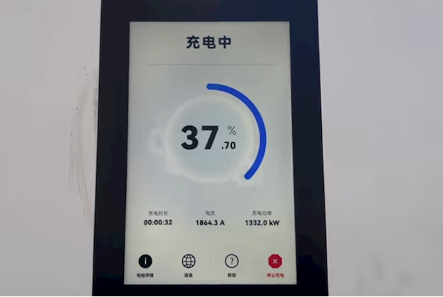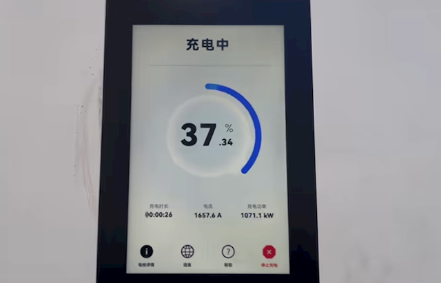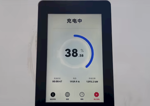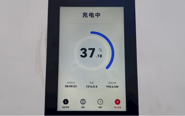 实测中,开充3秒功率就达到200千瓦,12秒攀升至580千瓦,23秒就接近1000千瓦,速率相当高。