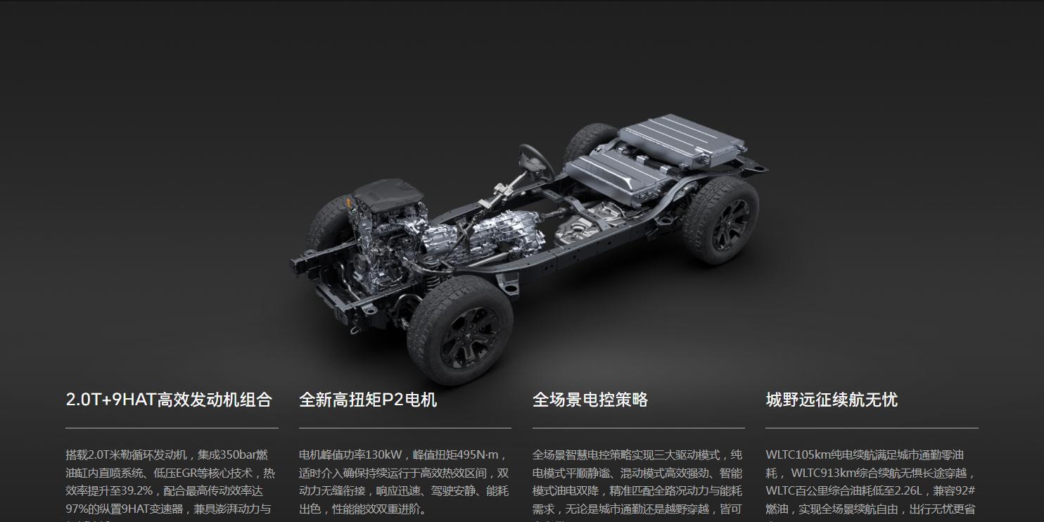 它匹配一块59.05千瓦时的电池组,WLTC纯电续航里程达到200公里,并采用800V高压平台,最大快充功率为163千瓦。两种混动版本都支持最大6千瓦的对外放电功能,比现款车型的功率更大,实用性更强。在基础的越野通过性参数上,新车的接近角为33度,离去角为31度,最小离地间隙为224毫米,最大涉水深度达到了800毫米。这些数据都表明,它依然是一台硬件基础非常优秀的硬派越野车。