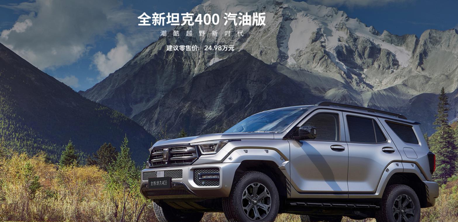 11月6日,全新坦克400系列车型正式上市,新车共有5款配置,价格区间在24.98万元至31.98万元之间。作为一款改款车型,新款坦克400继续提供了传统的燃油动力和插电式混合动力两种选择。