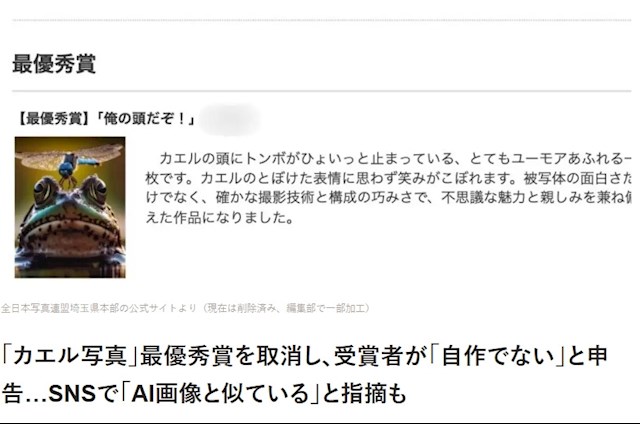 东窗事发后,获奖者事后坦承作品并非亲自拍摄,而是AI生成图像,主办方已于8日紧急撤销其资格。