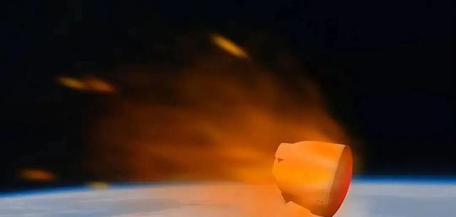 在太空和大气层之间,有一条分界线,也被称为卡门线。返回舱下降到100公里高度左右的时候,飞船就会以接近每秒7公里的速度撞向大气层。剧烈的摩擦使得返回舱表面温度瞬间飙升到1000多摄氏度,整个返回舱就像一个火球划过天际。