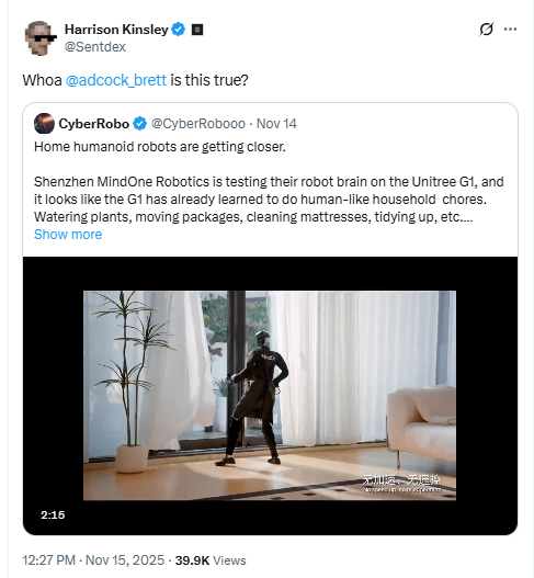 有美国网友直接在社交平台X上@了“美国宇树”Figure的创始人兼CEO——布雷特·爱德考克(Brett Adcock),问他:“这是真的吗?”