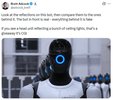 Brett Adcock对中国机器人公司的成果似乎抱有普遍的怀疑态度。此前他公开质疑中国另一家机器人公司——优必选(UBTECH)的帖子,并直言不讳地指出:
