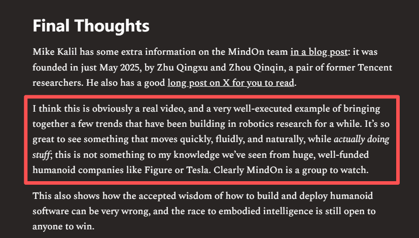 一位名叫Mike Kalil的美国科技博主更是发表长文,详细论证了为什么他认为灵启万物的视频“没有造假”。
