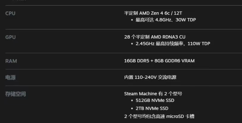 相比之下,硬件对比其实对价格的猜测更有意义,现在各家内存和芯片都在涨价,加上steam machine大概不会像索尼和微软那样硬件亏钱软件挣钱,所以光从部分硬件的价格来推测的话,512G版本的steam machine价格应该会在5k rmb左右,不知道这个价格大家是否能接受呢,个人感觉这个价格的话,如果是几乎纯steam玩家,并且对游戏表现有要求的玩家,还是可以接受的,相同价格下的台式游戏表现应该是比不了的,不过最终定价还有这台主机的表现,还是要等到明年发售之后才能知道了,欢迎大家理性讨论,有误欢迎指正。