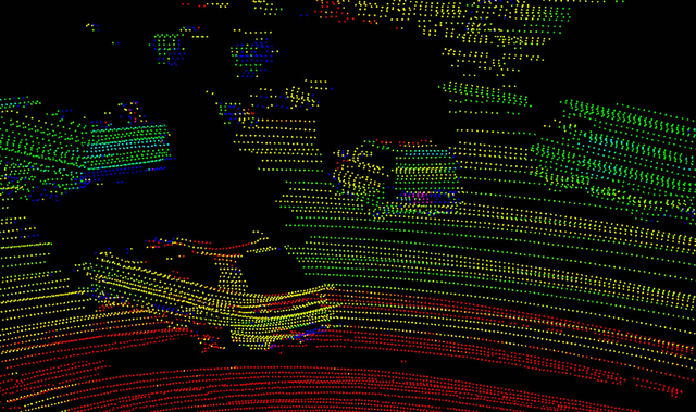 这还真不是我在夸张,大伙看,这是一张市面上主流的 128 线激光雷达的成像画面。