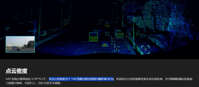 就比如 Livox 在 2021 年推出的激光雷达 HAP 其实就只有 6 组激光收发器,但它在 100ms 的积分时间里可达到与 144 线的旋转式机械激光雷达相似的点云水平,那么它就是一个 “ 等效 144 线 ” 的激光雷达。
