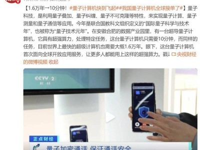 2024年被联合国教科文组织定为“国际量子科学与技术年”,也被称为“量子技术元年”。量子科技凭借其颠覆性潜力,正在全球范围内引发新一轮科技竞赛。我国此次突破不仅为全球科研合作提供了新平台,也为解决复杂问题提供了中国方案。