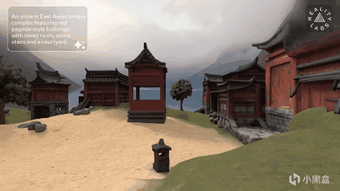 你随便丢一句“卡通中世纪村庄”或“火星上的科幻基地站”进去,在几分钟里,把一个能走能看的 50×50 米完整场景给你“铺”出来。