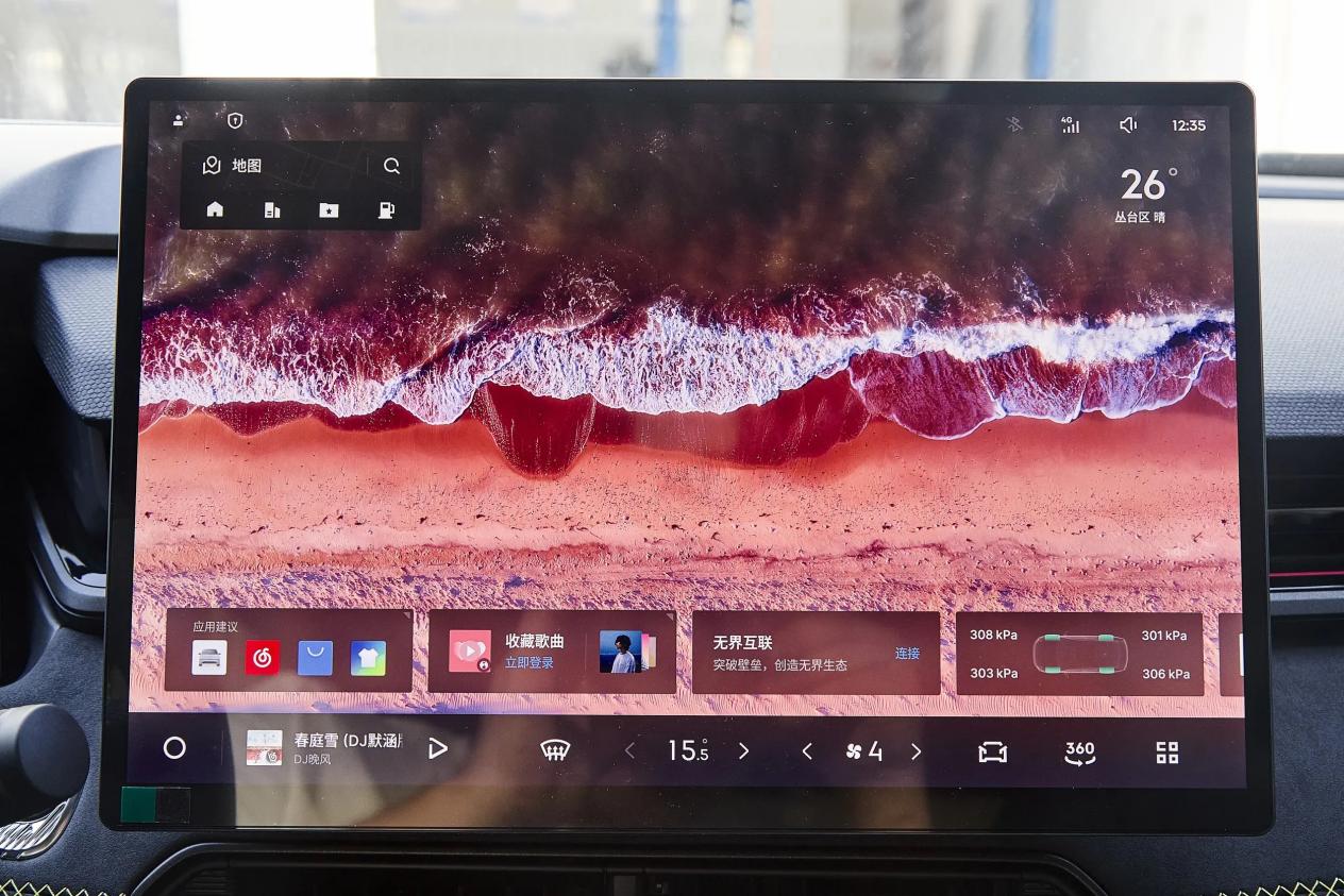 搭载LYNK Flyme Auto智能座舱系统。这套系统提供类似智能手机或者平板一样流畅直观的交互体验,15.4英寸悬浮式中控屏分辨率达到了2.5K,边框窄屏占比高,采用龍鹰一号车机芯片,算力相当于高通骁龙8155,都是7nm制程工艺,配合16GB内存和128GB存储,整套系统触控丝滑不卡顿,支持桌面自定义、小窗模式等,桌面布局简洁,常用功能触控方便。支持CarPlay/HUAWEI HiCar/Carlink/Flyme link手车互联功能,覆盖市面上大多数手机型号,实现手机与车机的无缝衔接,生态服务随时在线;内置高德810地图,可视化车道级导航让路线指引更为精准清晰;提供丰富的智能场景模式能够根据预设条件,自动调整座椅、空调、音乐等设置,提供个性化服务;车内三屏互联颗满足驾驶者与乘客在不同场景下的信息共享与娱乐需求。支持双区域语音识别控制,支持可见即可说,识别精准度高,常用功能的设置动动嘴就行了。