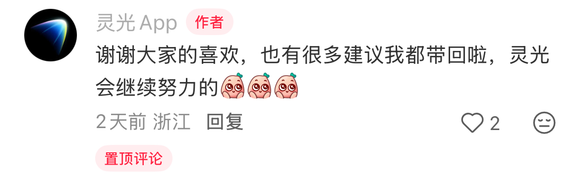 红星资本局注意到,对于网友的留言建议,灵光App官方账号回复称:“很多建议都带回啦,会继续努力。”