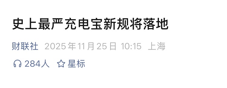 事情是这样的,就在昨天上午,财联社发表了一篇标题为“史上最严充电宝新规将落地”的文章。