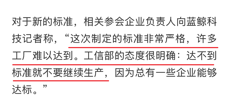 但工信部明确,达不到新标准,就不能批量生产并上市。