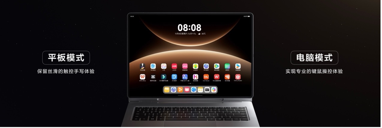试想一下,当你把键盘取下,它就是一台拥有 120Hz 高刷、移动全景声的顶级影音平板,你可以躺在沙发上用手指滑动浏览资讯、观看电影,享受流媒体时代的便捷。而一旦你需要处理工作,接上星跃悬浮键盘,系统瞬间切换至电脑模式。这一刻,你面对的不再是放大的手机应用,而是拥有完整桌面级文件管理、支持复杂键鼠操作、甚至可以运行 PC 级专业软件的生产力工具。
