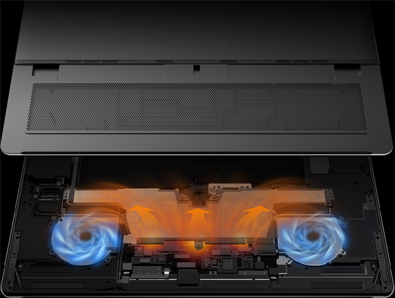 作为一台拥有生产力属性的设备,想要让处理器达成PC级的性能释放, “风扇 + 散热模组” 的主动散热系统必不可少,这也导致二合一平板很难做到极致纤薄,否则便要牺牲散热效能。