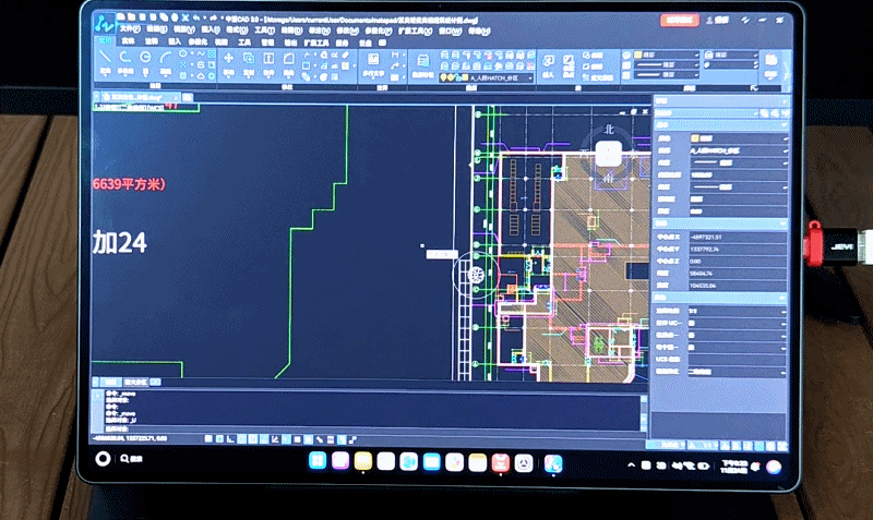 鸿蒙二合一平板电脑预装的中望CAD个人版,完全复刻了 Windows PC 版的全量功能,不仅采用一致的大屏布局,工具栏、菜单栏、功能区也一应俱全。像图纸浏览、绘制、编辑、标注、打印等高频功能,以及文件对比、智能夹点、批量打印等专业功能均全部保留。
