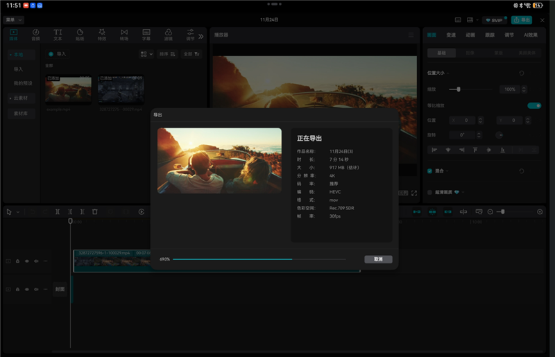 我们将一个渲染好的时长为7分钟的视频以4K 30FPS H265编码导出,鸿蒙二合一平板电脑用时14分钟左右,比使用Intel与AMD核显的PC快了数倍。