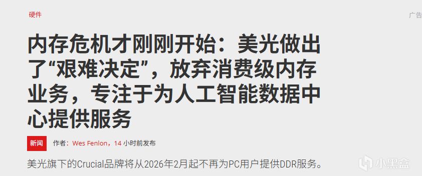 对玩家和DIY用户而言,这意味着曾经性价比极高的Crucial内存和SSD(如T705、P310系列)即将彻底告别零售渠道,未来升级PC的内存与存储成本将大幅攀升。内存危机,才刚刚开始。