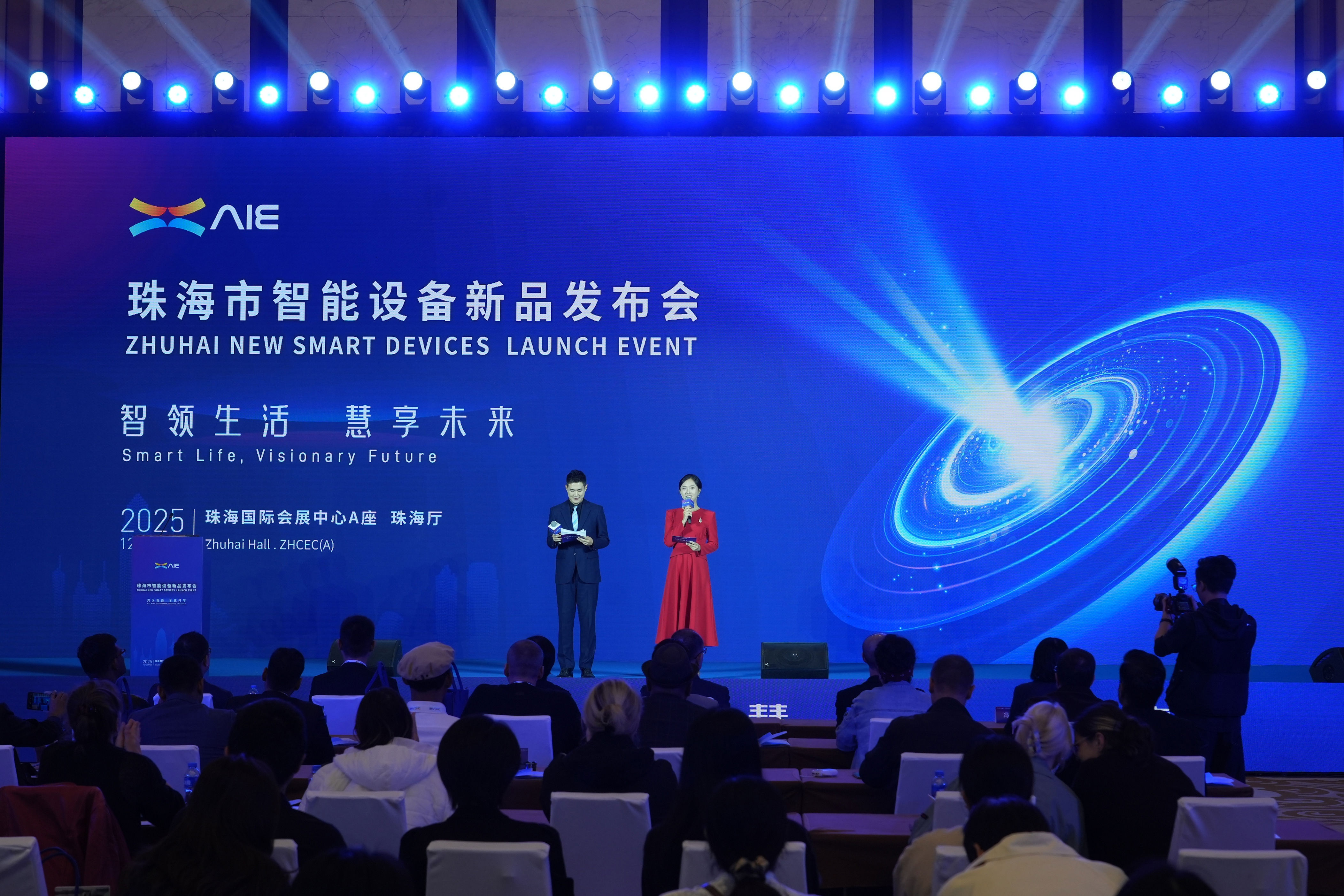 12月4日下午,以“智领生活、慧享未来”为主题的珠海市智能设备新品发布会在珠海国际会展中心举行。作为2025年全球智能机械与电子产品博览会(AIE)的核心配套活动,本次发布会汇集了九家珠海创新企业,集中发布一批科技产品,覆盖智慧生活、精密制造、新能源生产、公共安全与健康监测等多个领域。