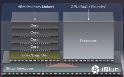 根据报道,这项技术的核心目标,是打破传统处理器与内存分离的限制,让运算与存储能在一个模块中完成,缩短数据传输距离、降低延迟与功耗。具体来说,是把GPU核心直接植入HBM的基底裸晶(Base Die)中,让HBM不再只是内存,而成为具备运算能力的组件。