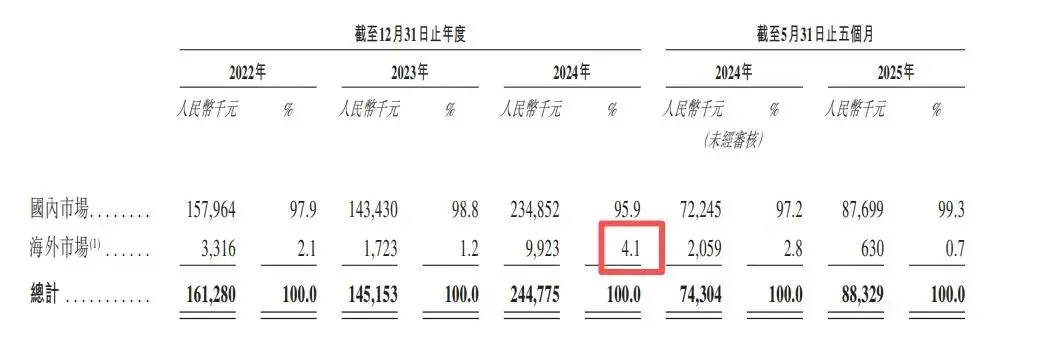 云迹的海外布局还在起步阶段,2024年海外收入占比不到5%。