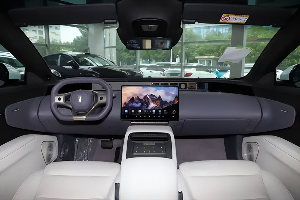 进入车内,阿维塔12的内饰与传统豪华轿车截然不同。它摒弃了中控大屏+物理按键的传统布局,采用了“环抱式一体座舱”设计。整个仪表台向驾驶者微微倾斜,线条简洁流畅,没有多余的装饰元素。最醒目的莫过于那块35.4英寸4K全景宽屏,贯穿整个前仪表台。它同时承担仪表显示、中控信息以及副驾娱乐功能。屏幕显示清晰,亮度高,在强光环境下也没有反光问题。搭配HarmonyOS 4系统,整体交互响应非常流畅。
