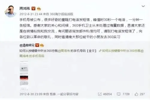一头雾水的周鸿祎上网一看,才发现自己的手机号竟被一个南京大学的学生破译了,而且还被挂在了网上。