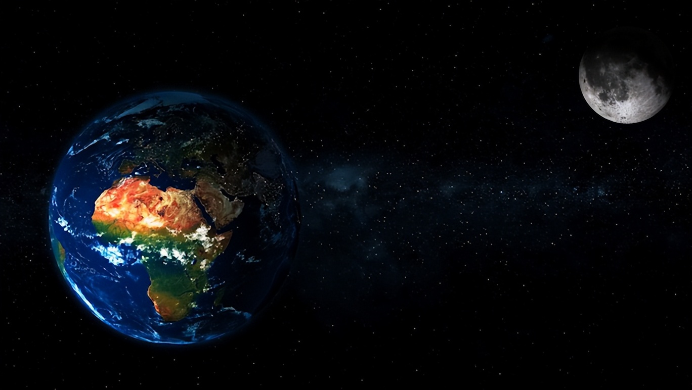 但科学家们通过研究发现,按照这个速度,要3000万亿年地球才会彻底刹车。那为什么地球的一天还会变长呢?真正的“幕后黑手”,其实是我们身边最熟悉的两个“老朋友”——月球和太阳。你可能觉得月亮每天都在天上挂着,离我们远远的,有什么本事能影响地球呢?但实际上,月球的“杀伤力”在几亿年前可不是闹着玩的。这事得从月球“刚诞生”那会说起。我们现在看到的月球,和地球的平均距离大约是38万公里,但在它刚诞生的时候,距离地球只有2.25万公里,差不多只有现在的1/17!那时候的月球,挂在天上就像个巨大的大灯泡”。月球离地球越近,引力就越强。强到什么程度?它对地球的潮汐力,也就是引力不均造成的拉扯,比现在强5000倍!月球就像个“宇宙吸盘”,把地球的海水拉来拉去,海洋每天就像在做“拉伸运动”。这里有个关键点:地球自转的速度要比月球绕地球旋转的速度快。