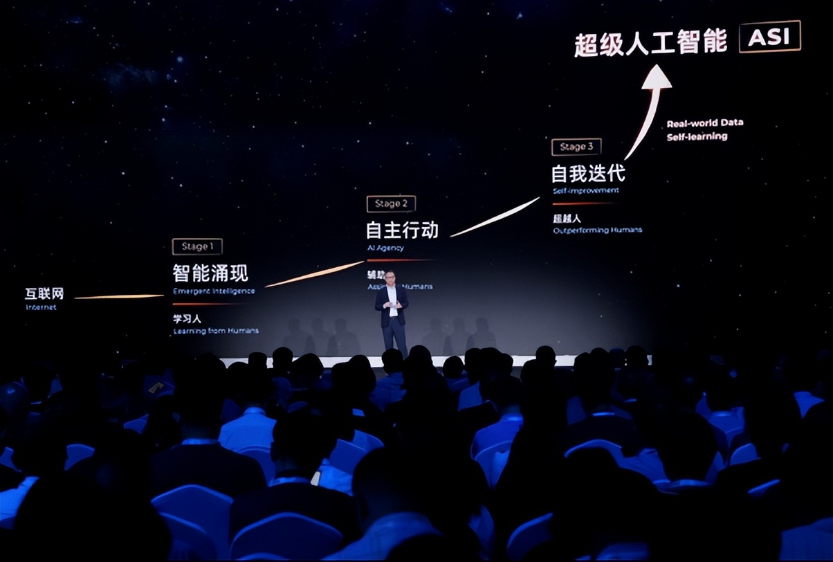在2025年云栖大会上,吴泳铭首次系统阐述“超级人工智能之路”,提出实现通用人工智能(AGI)仅是起点,终极目标是发展出能自我迭代、全面超越人类的超级人工智能(ASI)。
