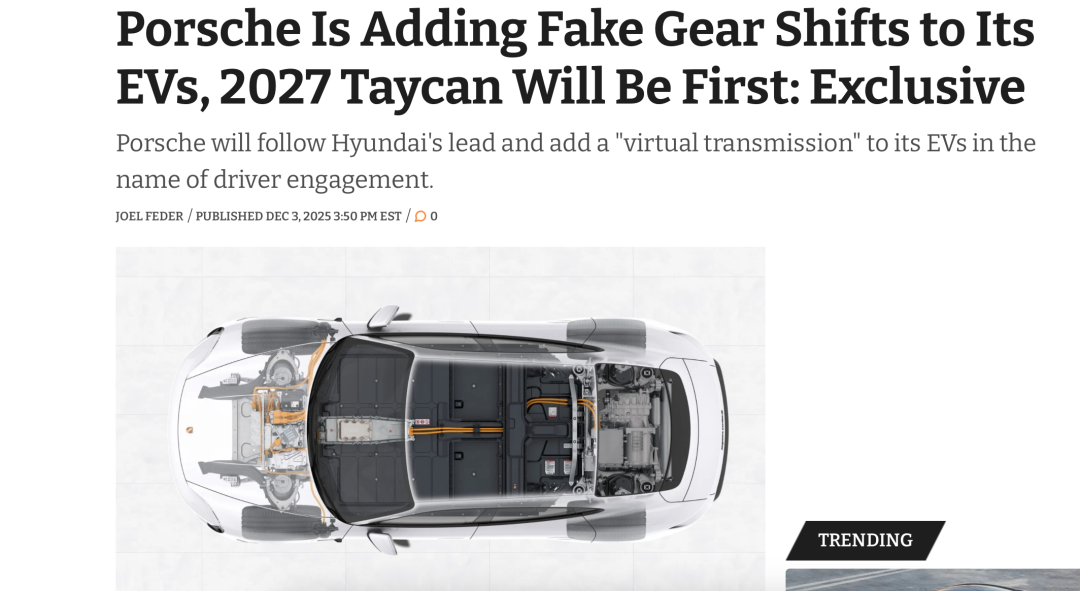 最近有条新闻挺逗:保时捷打算在纯电车上搞个“虚拟变速箱”,新款 Taycan 可能率先搭载。