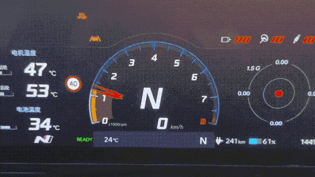比如仪表盘转速也会短暂上下波动,模拟燃油车发动机在离合器断开接入的一刹那,转速降低和回升的效果。