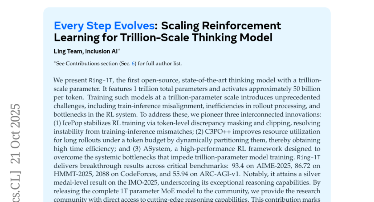 这项由Inclusion AI团队完成的突破性研究发表于2025年1月,论文编号arXiv:2510.18855v1。该研究首次向全世界公开了一个拥有万亿参数的开源"思维模型"Ring-1T,标志着人工智能推理能力迈入了全新的历史阶段。