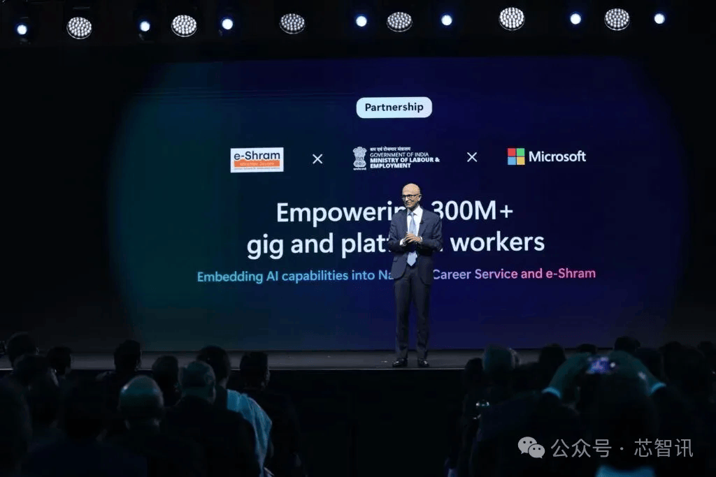 微软董事长兼首席执行官萨蒂亚·纳德拉在新德里发表主题演讲时还宣布,微软将与印度劳动和就业部合作,将人工智能技术整合到印度劳动和就业部的两个关键数字公共平台——国家职业服务(NCS)和eShram平台。这项举措旨在让超过3.1亿非正规就业人员受益于人工智能。e -Shram基于微软Azure安全且可扩展的云基础设施构建,将劳动者与18项福利计划连接起来,并已助力印度社会保障覆盖率从2019年的24%提高到2025年的64%(国际劳工组织估计)。