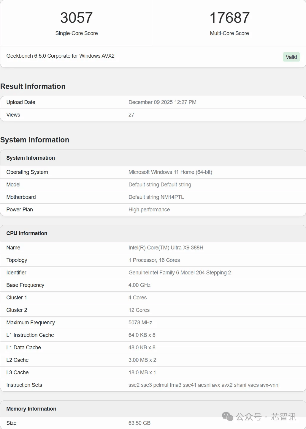 12月9日消息,据外媒wccftech报道,基于Intel 18A制程的旗舰版英特尔Panther Lake芯片——Core Ultra X9 388H的Geekbench测试成绩曝光。
