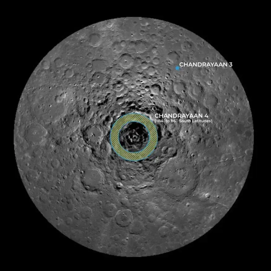 并且在12月之中,又公布了其更加详细的采集样品点,那就是印度将月船四号的采样点,锁定在了月球南纬84~86°,虽然说距离南极中心也还是有一定差距的,但是印度的目标没有变化,还是要尽可能的锁定对月球水源的探索,这也是当下世界各国的主要目标,包括失败的美国雅典娜月球着陆器,2026年我国进行的嫦娥七号任务,都是要去寻找水源。