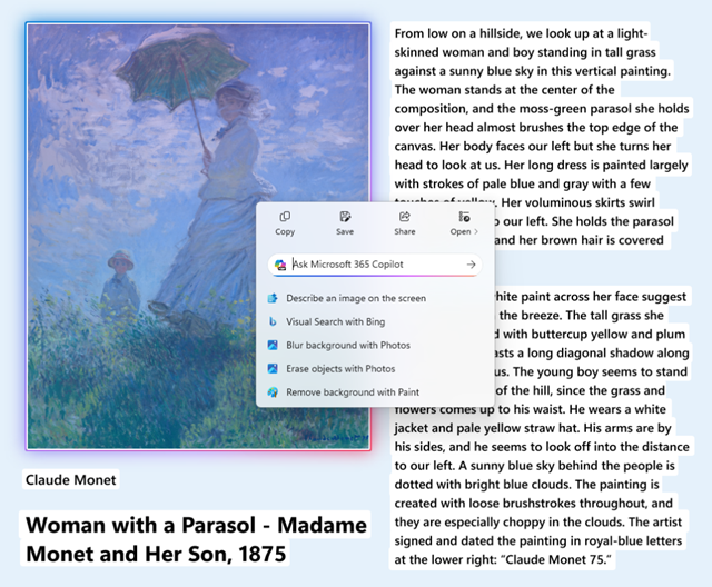 针对 Windows 11 AI+ PC 用户,微软深度打磨系统交互体验。首先,“Click to Do”右键菜单采用更简洁设计,在屏幕出现大图或表格后会自动弹出,方便用户快速执行复制、保存或分享等高频操作。