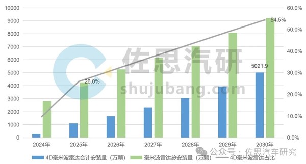 2030年4D雷达装车量将达5000万颗 成本逼近传统雷达