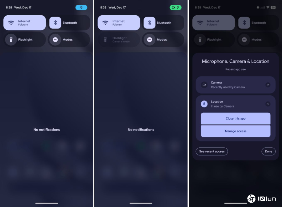 在Android 12中,Google引入了状态栏指示灯,用来在应用访问摄像头或麦克风时发出提醒。这一以隐私为中心的UI元素简洁而有效,帮助保持透明度,而现在它将扩展到另一个同样需要透明的关键手机功能。