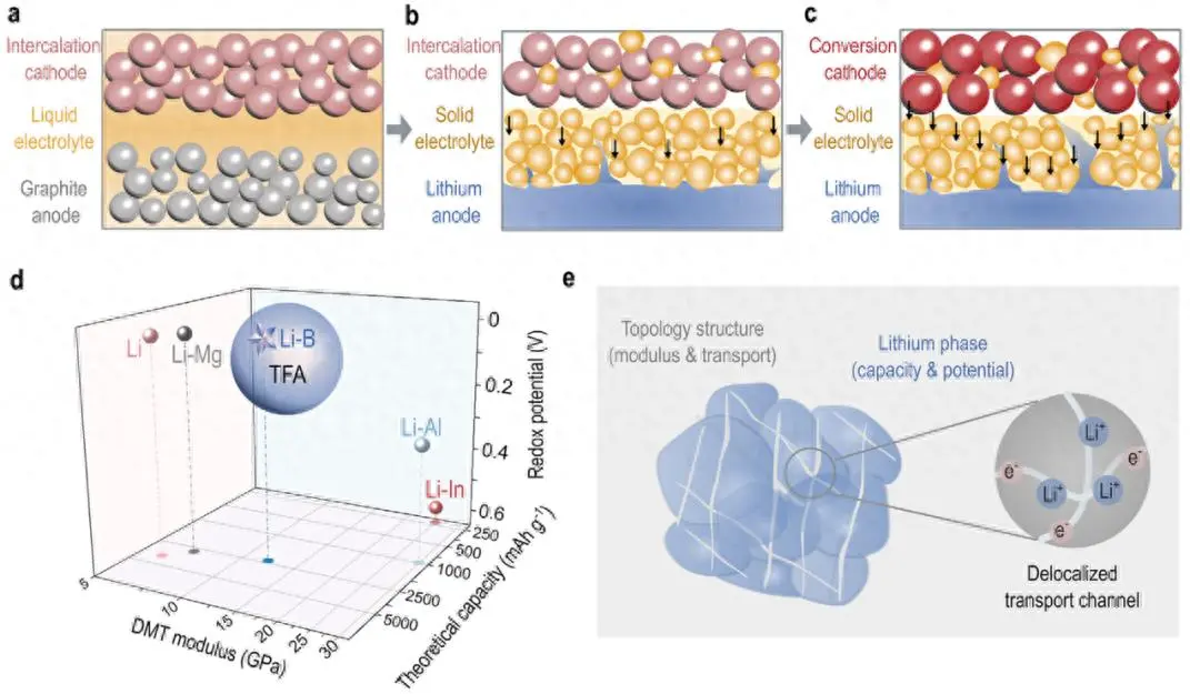(c) 含有转化型正极材料的新型全固态锂电池。